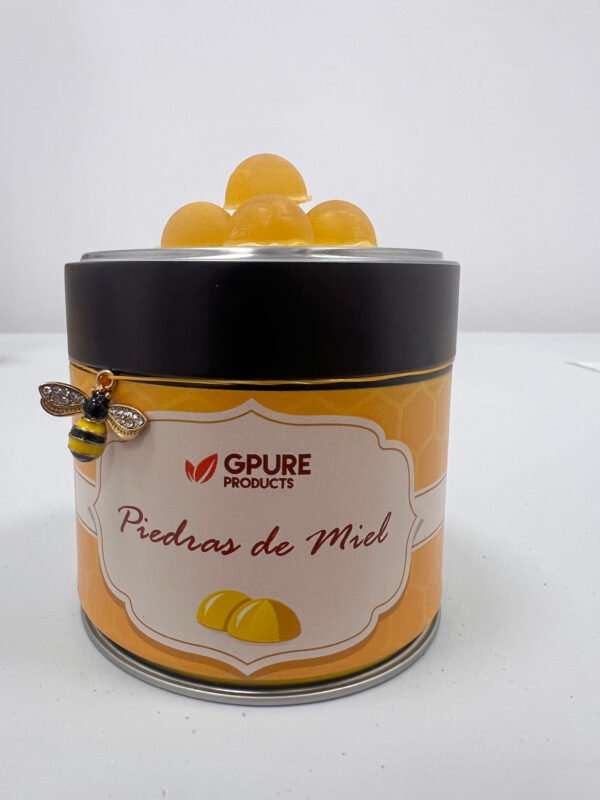 Lata de piedras de miel de flores
